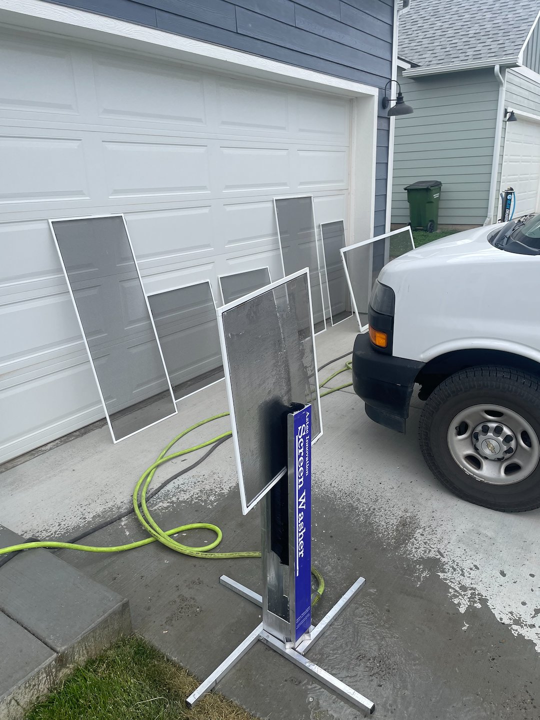 We finished the project with a thorough window screen washing, scrubbing, and rinsing the screens to remove dust, debris, and grime. Clean screens not only look better but also prevent dirt from redepositing onto freshly washed windows.