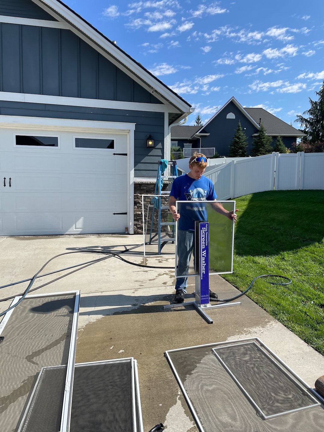 Once the house wash was complete, we moved on to professional window washing using purified water and streak-free cleaning techniques. Clean windows dramatically enhance the look of a freshly washed home, and this project was no exception — the glass came out crystal clear. We also provided window screen washing, removing dust, pollen, cobwebs, and grime that often build up unnoticed. After cleaning, the screens looked fresh and allowed more natural light and airflow into the home.