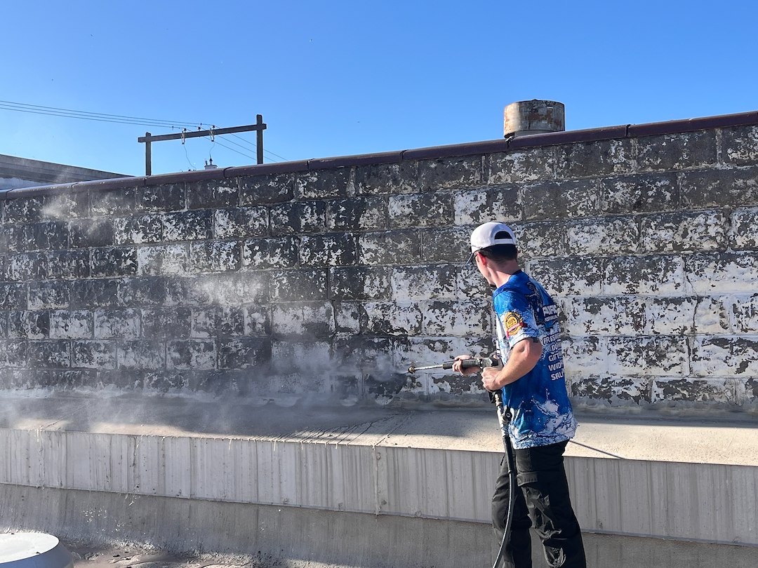 Our team arrived on-site equipped with commercial-grade pressure washing systems capable of removing old paint, embedded grime, and years of weather-related buildup. Retaining walls can accumulate moisture, mold, and compromised paint layers over time, making proper surface preparation essential for long-lasting results. We carefully pressure-washed the entire wall, stripping away loose paint and contaminants to ensure the future paint job would adhere properly and look flawless.
