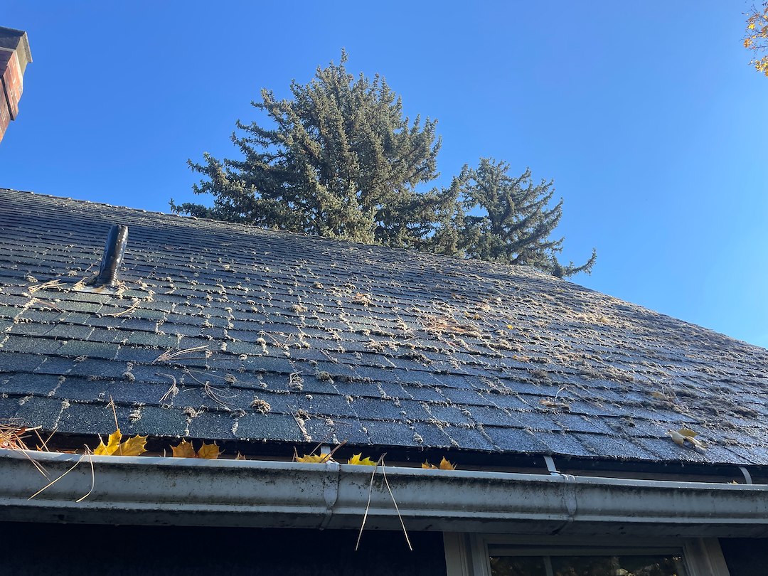 We began by inspecting the roof to determine the severity of growth and to ensure the structure was suitable for soft washing. Next, we applied our specialized moss treatment, which immediately started breaking down the moss and organic buildup. Over the following days and weeks, the moss will continue to die off, turning lighter in color before safely shedding away with natural weather.